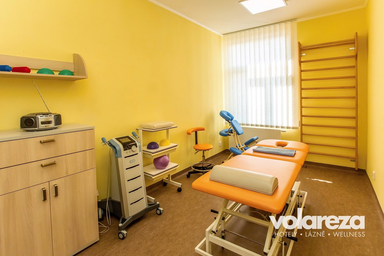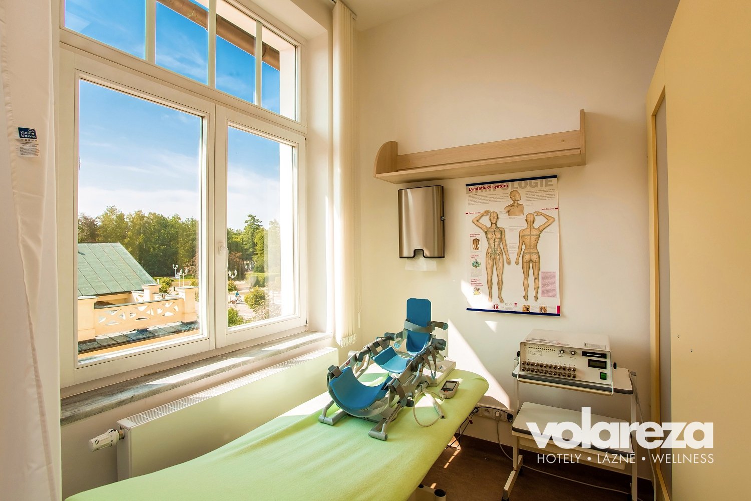 Diathermie, Laser, Elektrotherapie, Magnetotherapie, Stoßwelle, Ultraschall, Infrarotlicht (Sollux), Distanzelektrode, Biolampe, Biostimulation, Gasinjektionen und Oxygenotherapie. Im Rahmen des Aufenthalts kann auch eine langzeitige EKG-Untersuchung oder Blutdrucksunter­suchung durchgeführt werden.