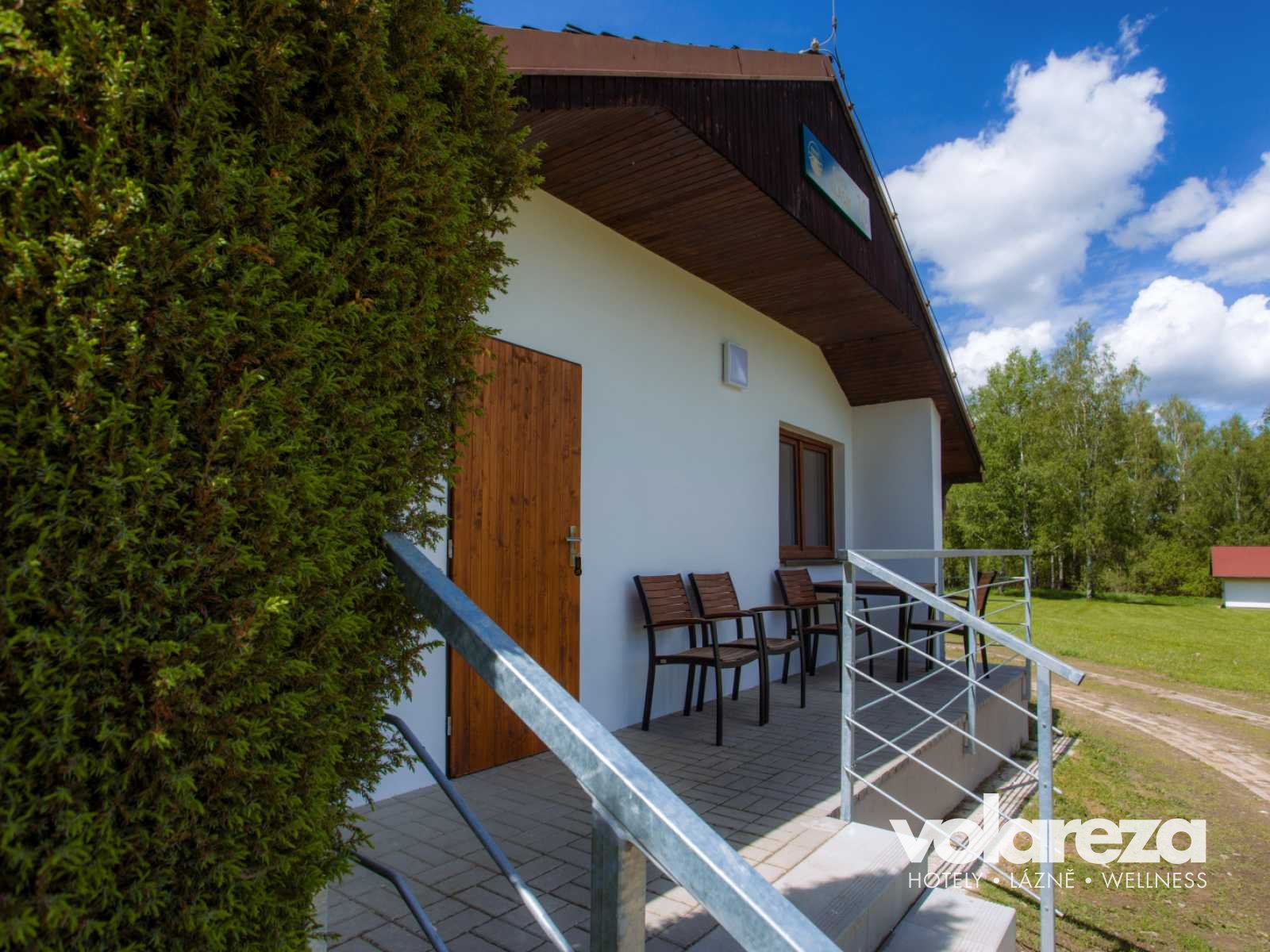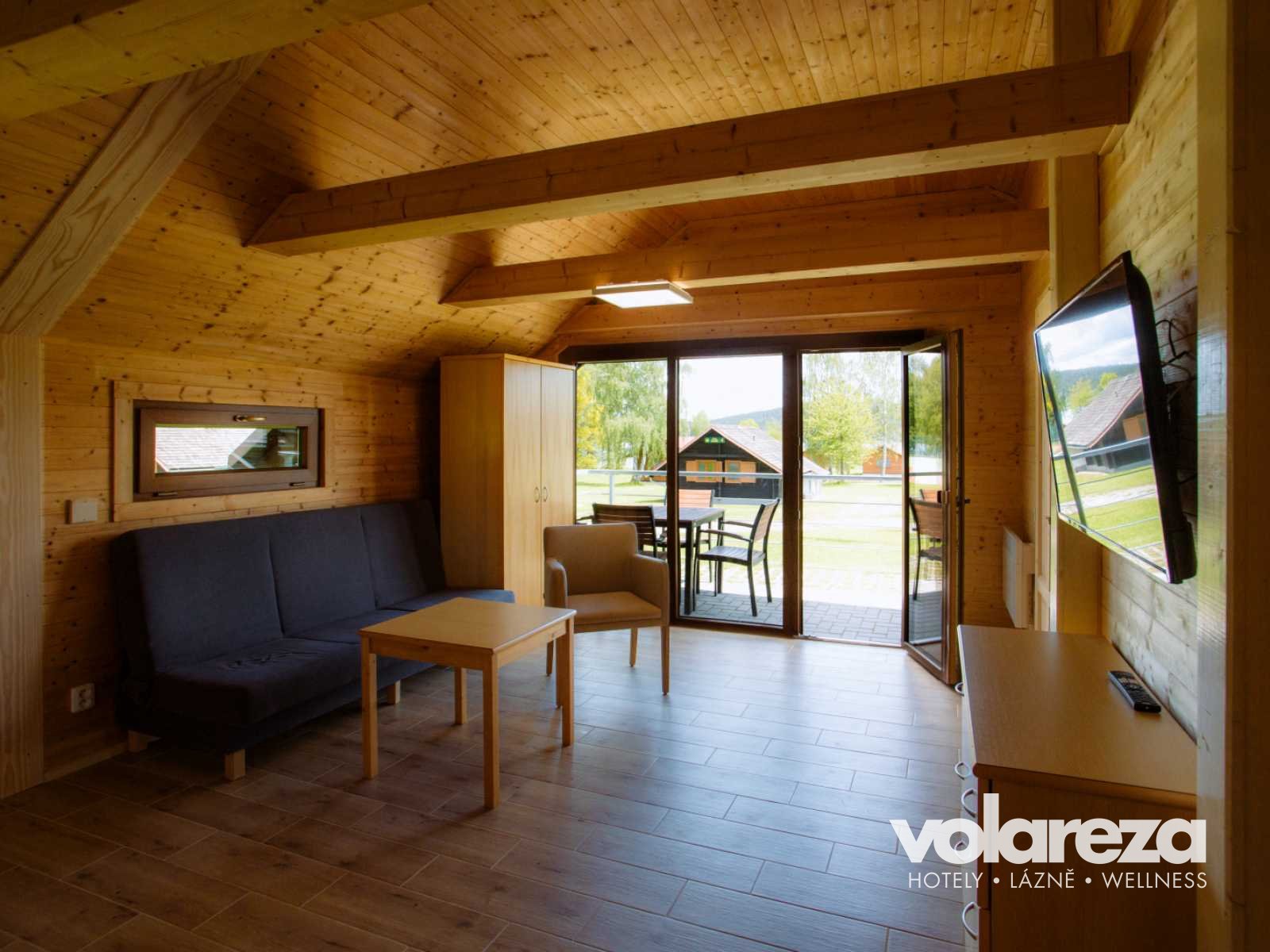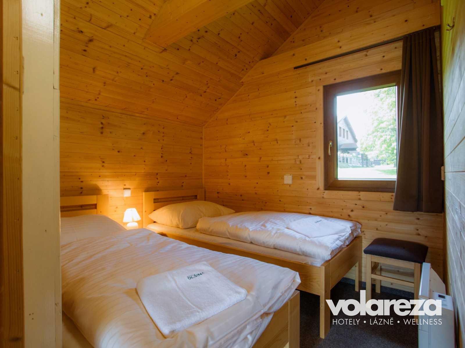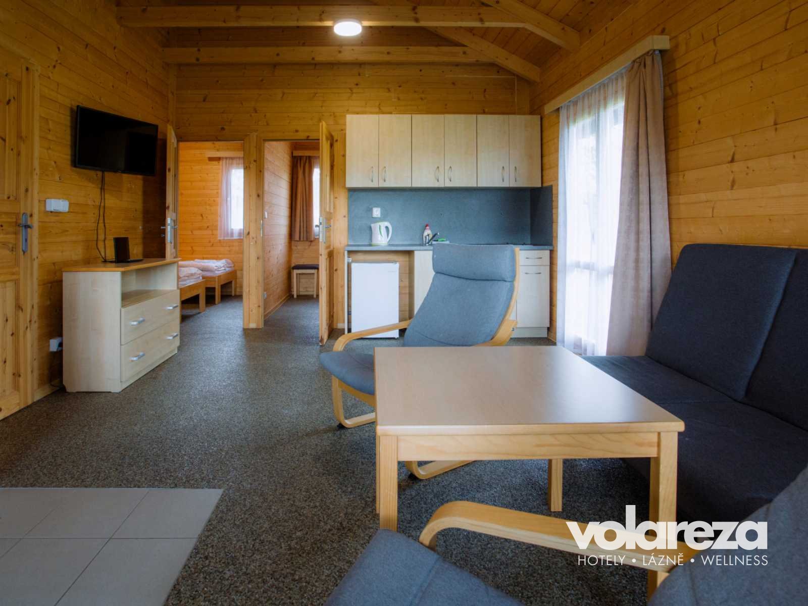Srubové chaty pro 4 osoby mají dvě dvoulůžkové ložnice s možností rozšíření o přistýlku. Využít můžete i dvě bezbariérové chatky s jednou ložnicí se 3 lůžky. Všechny chatky mají zařízenou kuchyňku s lednicí, varnou deskou, obytnou místnost s TV, sprchu, WC a terasu s posezením. Parkování osobních automobilů je možné přímo u chat. Rozmístění chatek a jejich dispoziční řešení nabízí jedinečný klid a bezprostřední kontakt s přírodou.