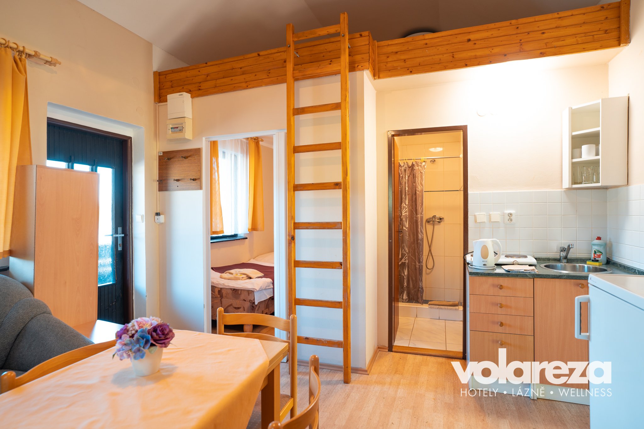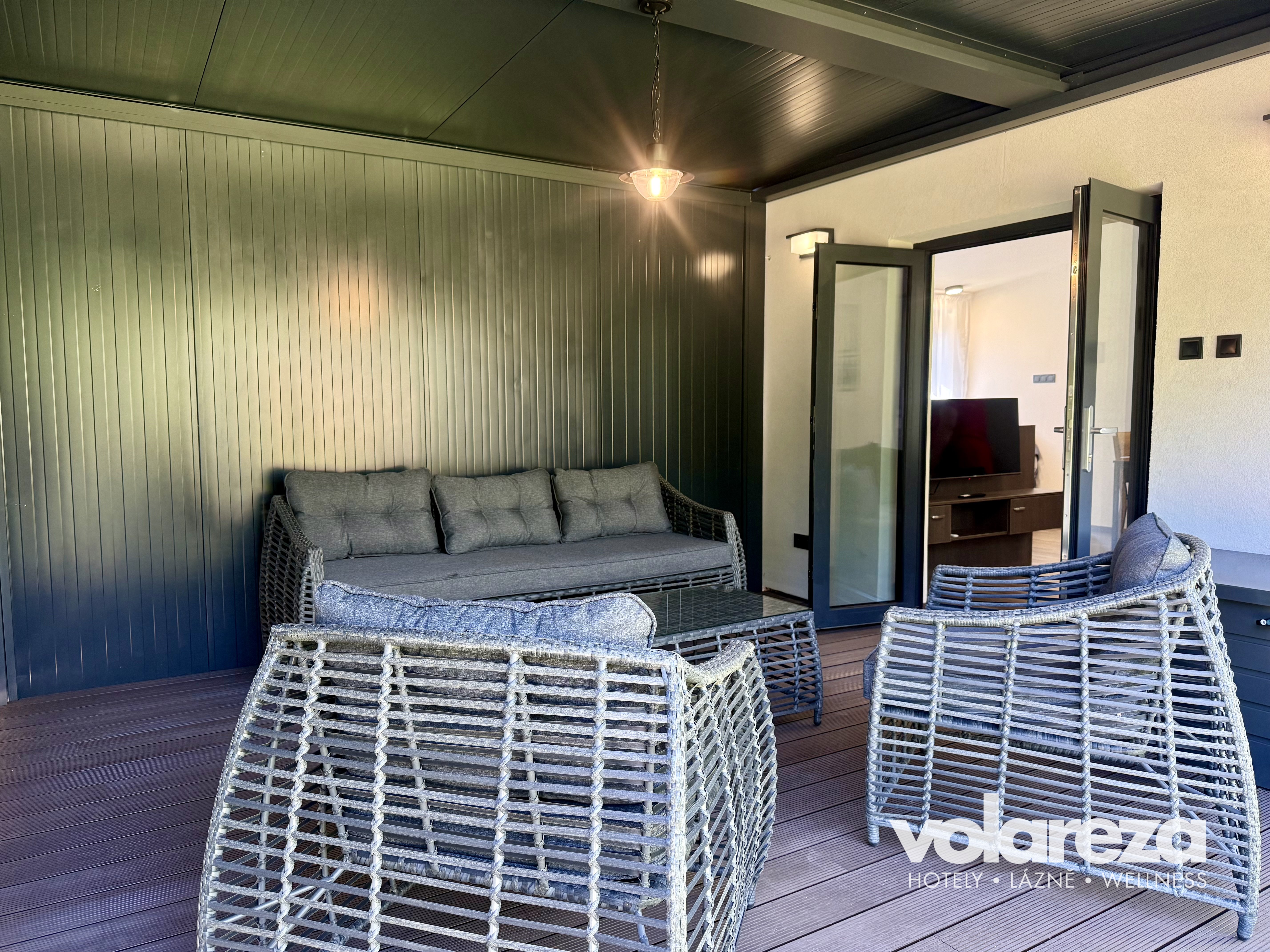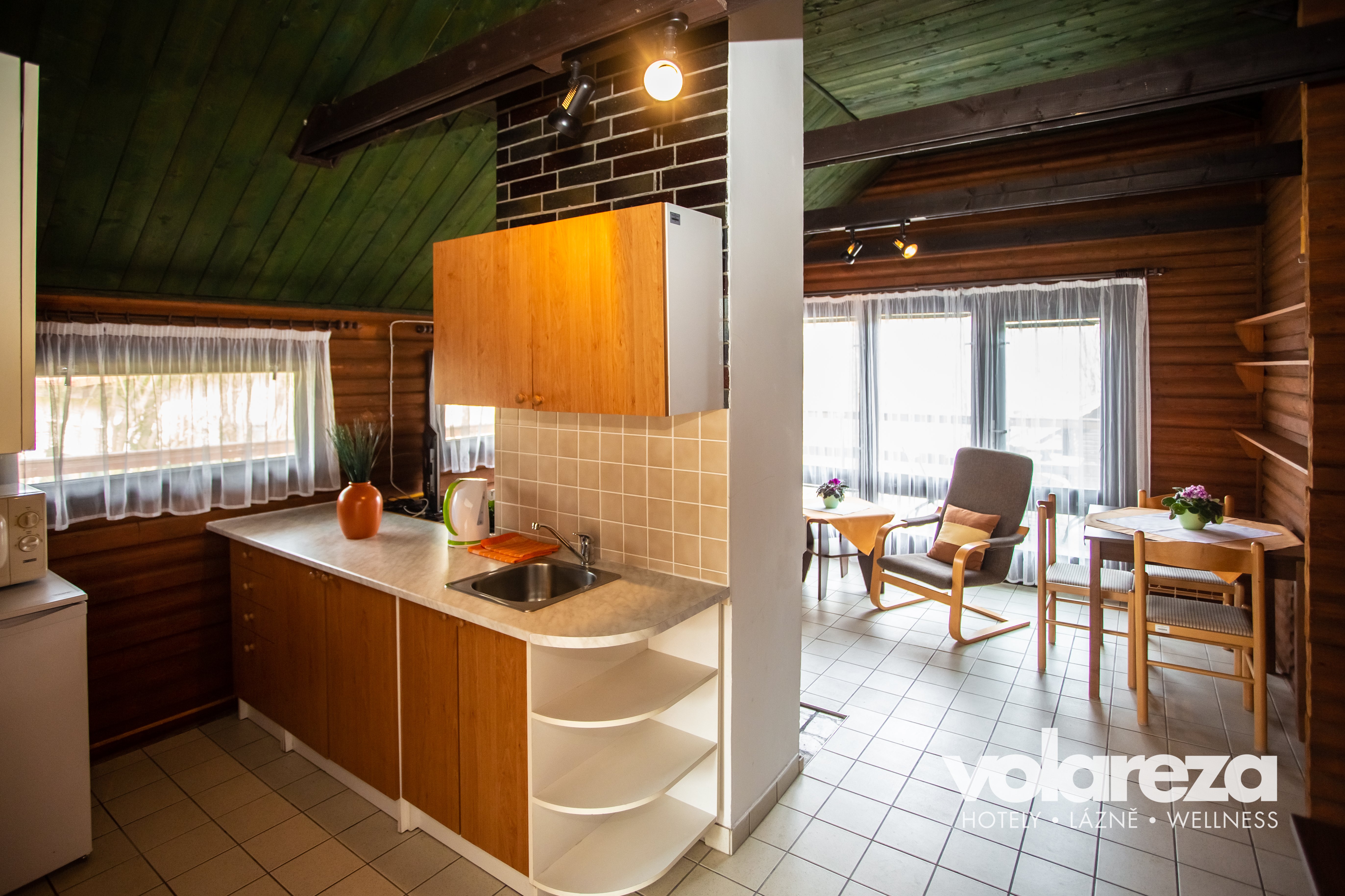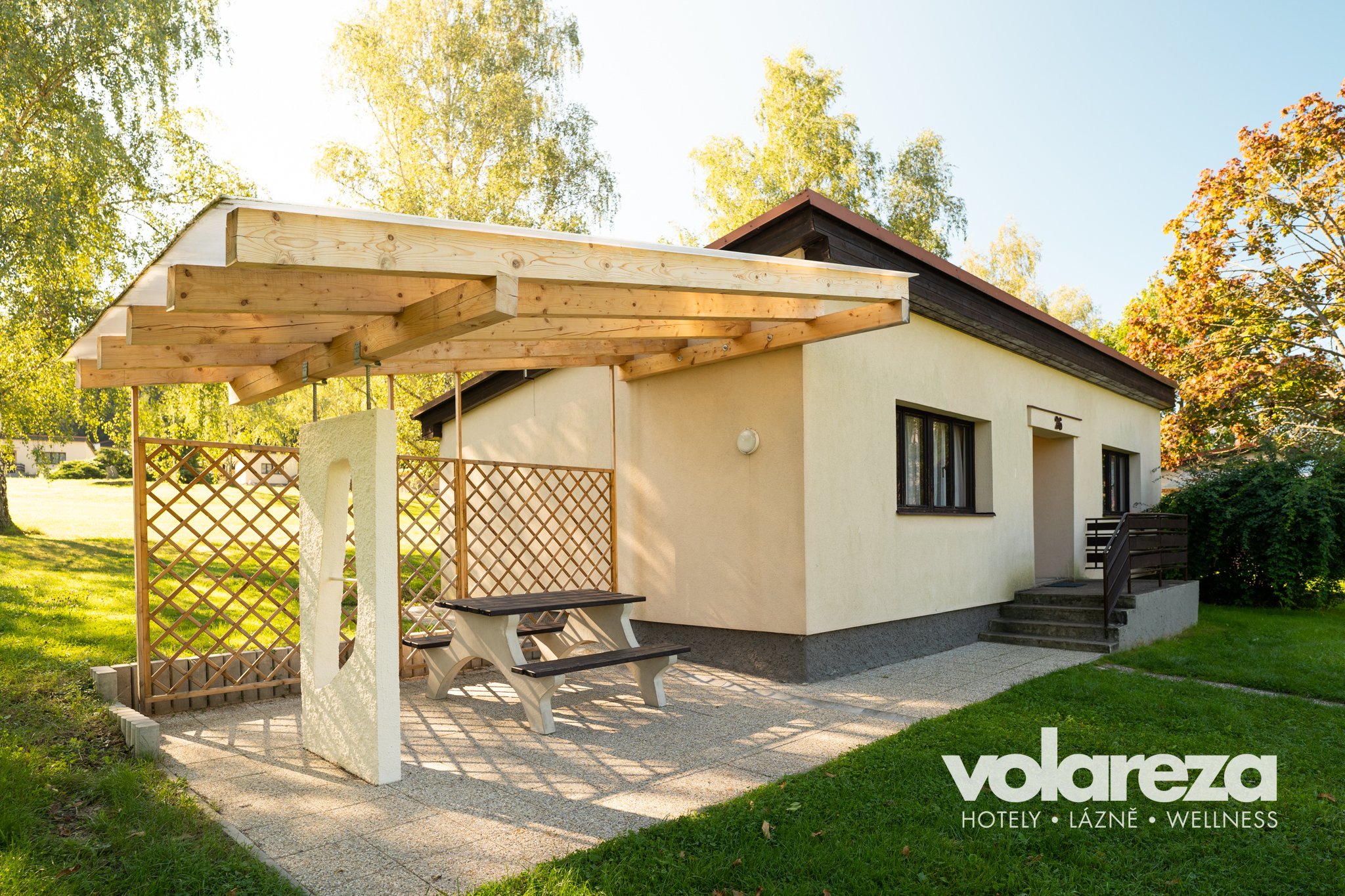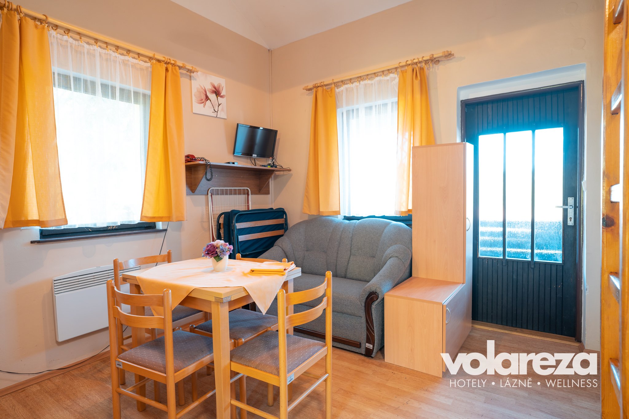 Chaty se nacházejí v uzavřeném areálu s maximální vzdáleností 300 m od hotelu a hosté tak mohou využívat bohaté wellness a sportovní zázemí zařízení včetně jeho gastro služeb. Ani ošklivého počasí se při pobytu v chatách bát nemusíte, chatky jsou vytápěny přímotopy. Nedílnou součástí ceny ubytování v chatkách je snídaně formou teplého a studeného bufetu a v případě zakoupení týdenního pobytu v hlavní sezoně máte rovněž v ceně vstup do hotelového aquacentra (2x za pobyt). Samozřejmostí je ložní prádlo a ručníky, které vyměňujeme 2x za pobyt. Parkování vozidla je možné u chaty nebo na centrální odstavné ploše zařízení.